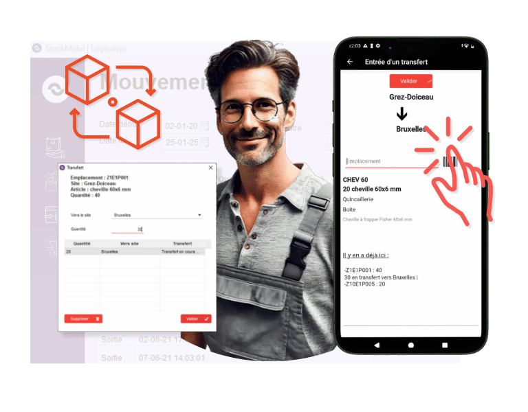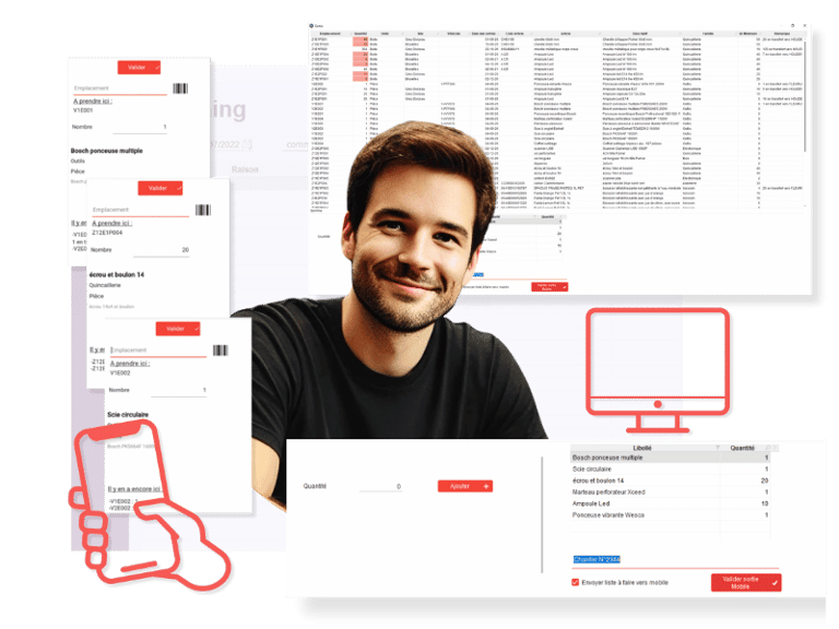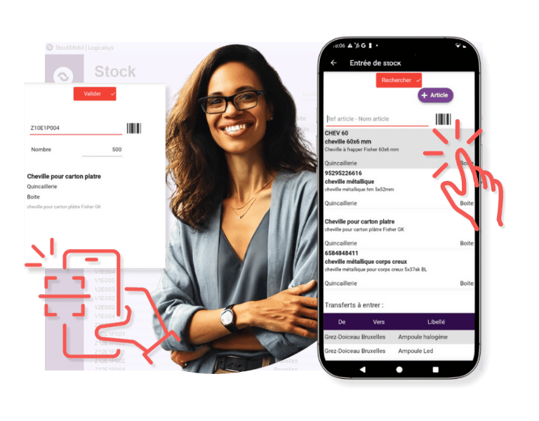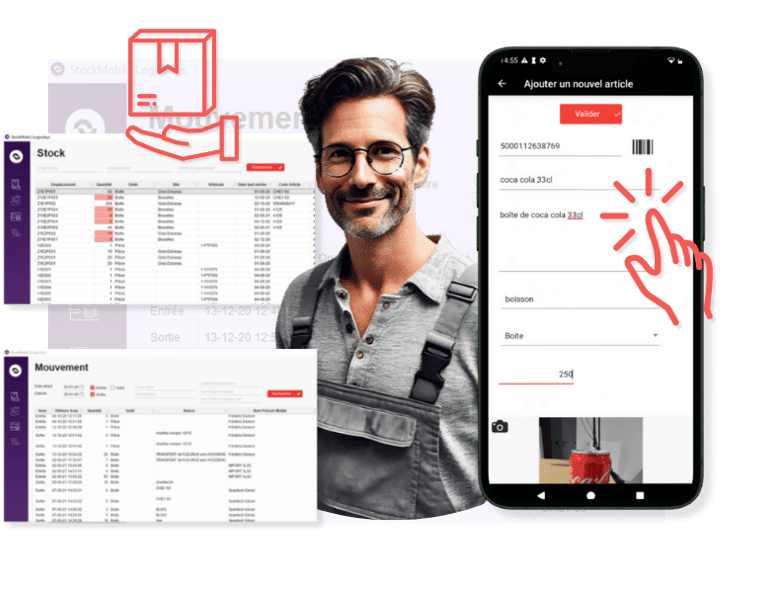 Dès que vous ajoutez un nouvel article ou ajoutez une nouvelle entrée, vous cliquez et scannez avec votre smartphone. Dès que vous faites une sortie, vous scannez l'emplacement et vous donnez la quantité. Et c'est tout ! Facile à faire tous les jours.
